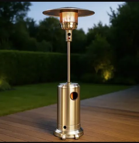 Chauffage de terrasse autonome à gaz, idéal pour les soirées fraîches, les repas en extérieur ou tout type d’événement nécessitant un point de chaleur efficace et mobile.